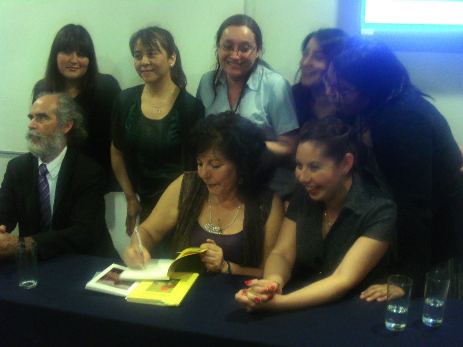 | Aquí, con autora y editoras del libro, en Biblioteca de Santiago. |